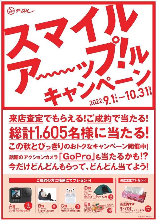 9/1から10/31までアップル浜松バイパス下飯田店にて買取MAXキャンペーンを行います。