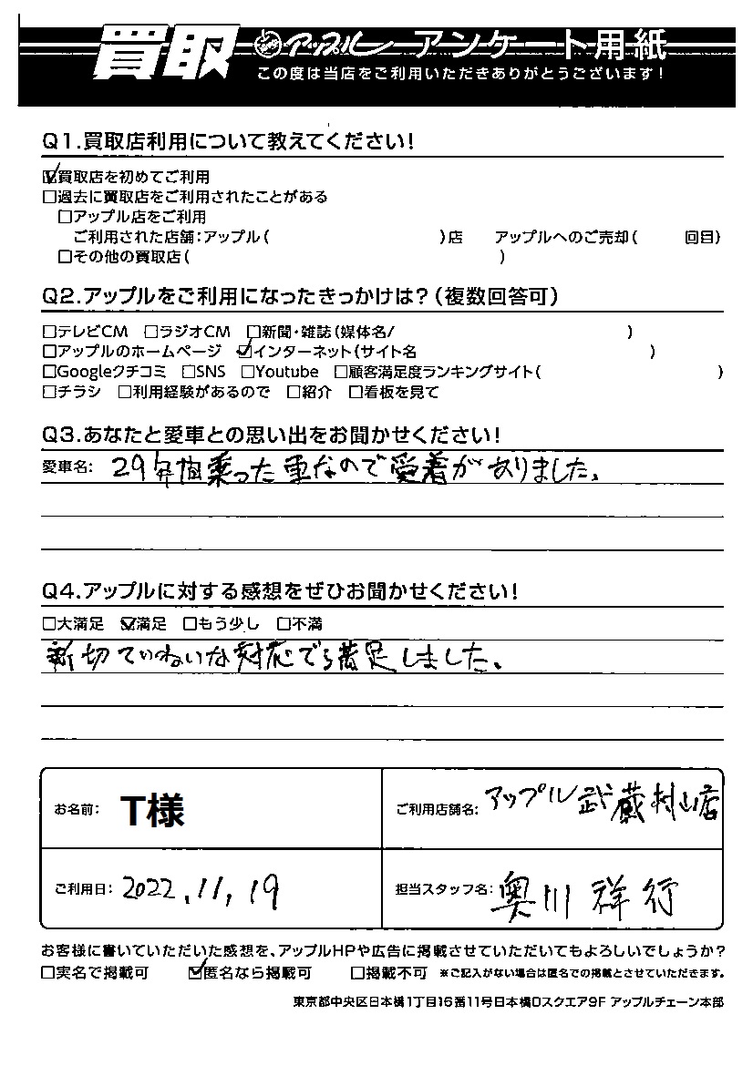 ご利用日:2022年11月19日 担当:奥川
