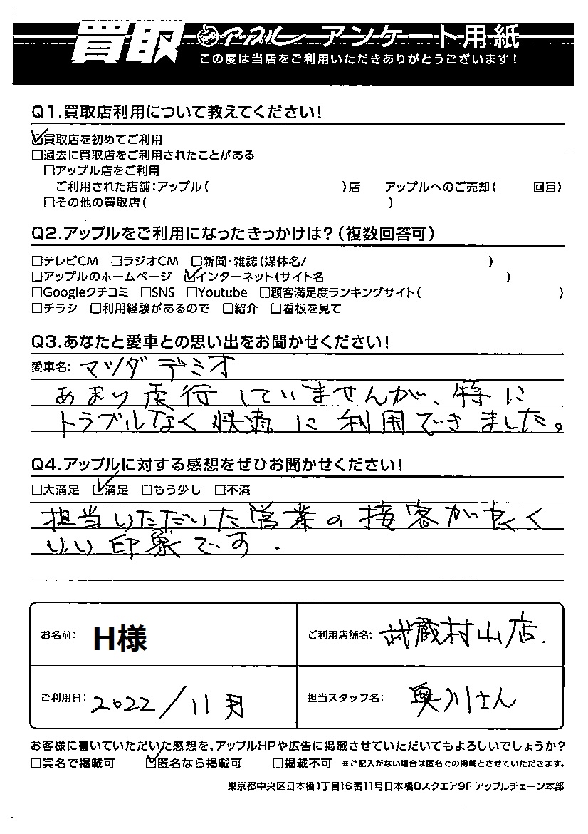 H様 車名:マツダ デミオ
