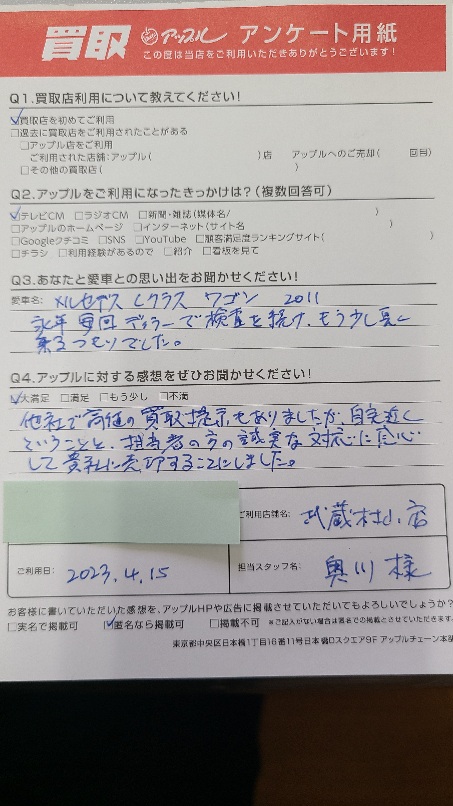他社で高値の買取提示もありましたが、自宅近くということと、