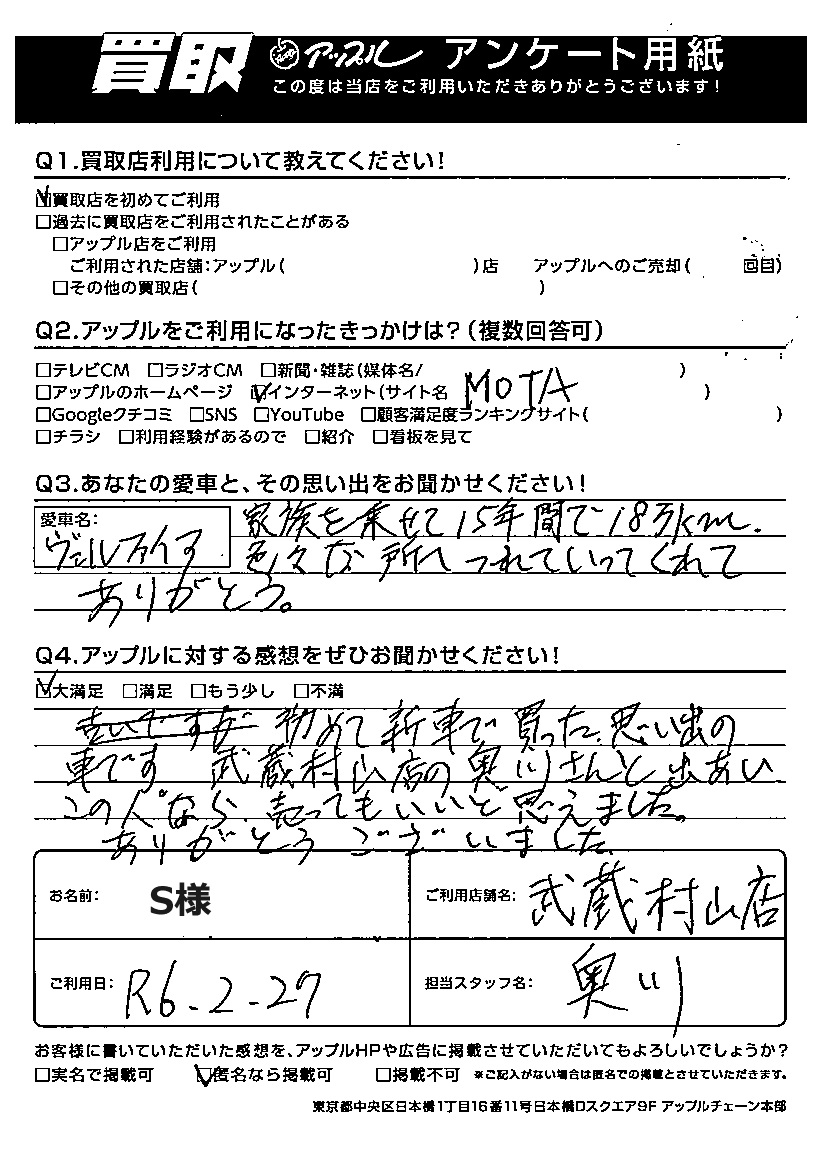 S様 車名:トヨタ ヴェルファイア(H27年1月~のHYBRID含む)