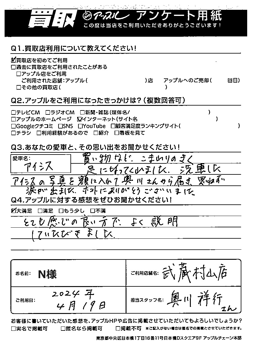 ご利用日:2024年4月19日 担当:奥川祥行
