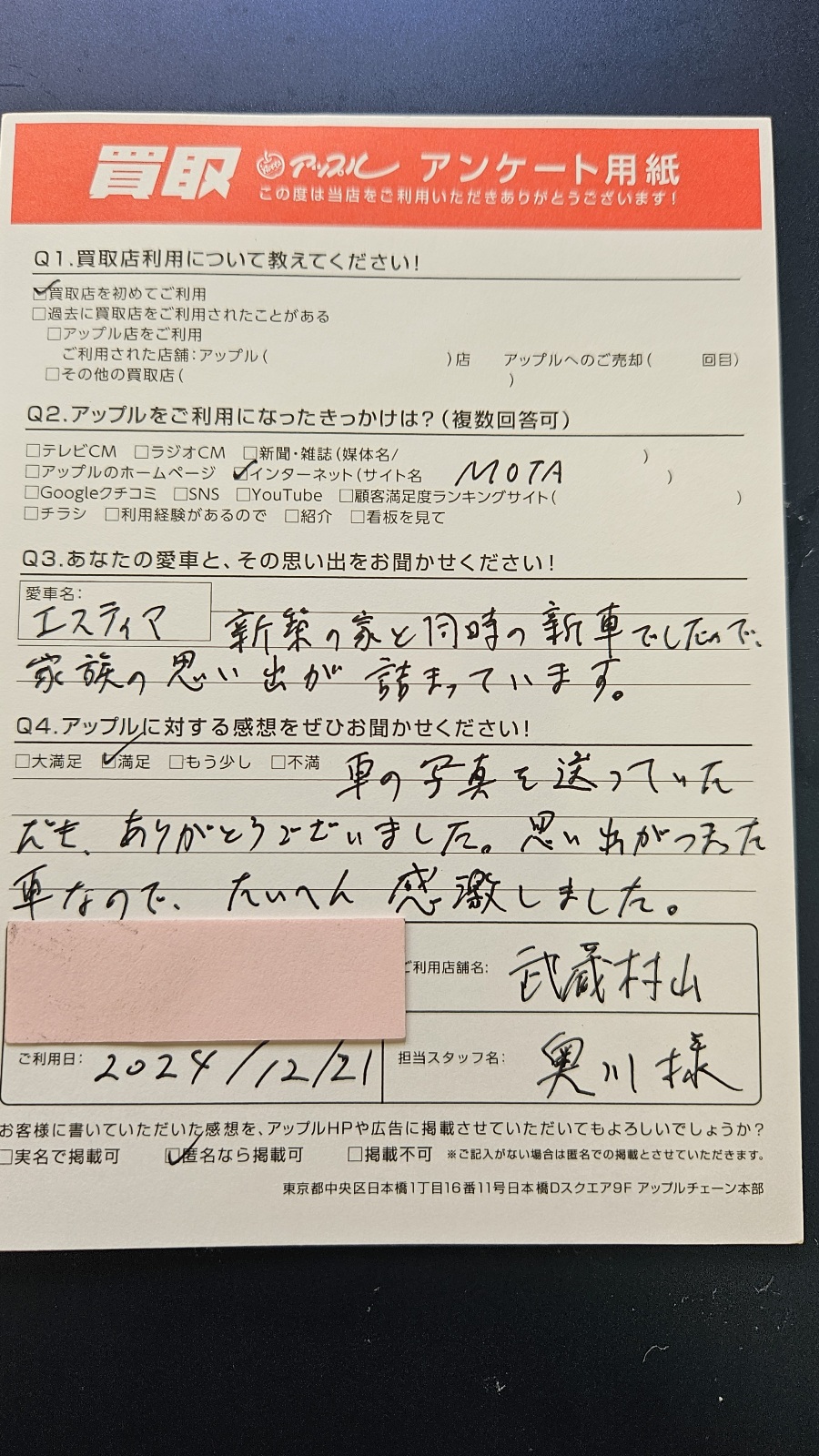 新築の家と同時の新車でしたので家族の思い出が詰まっています。