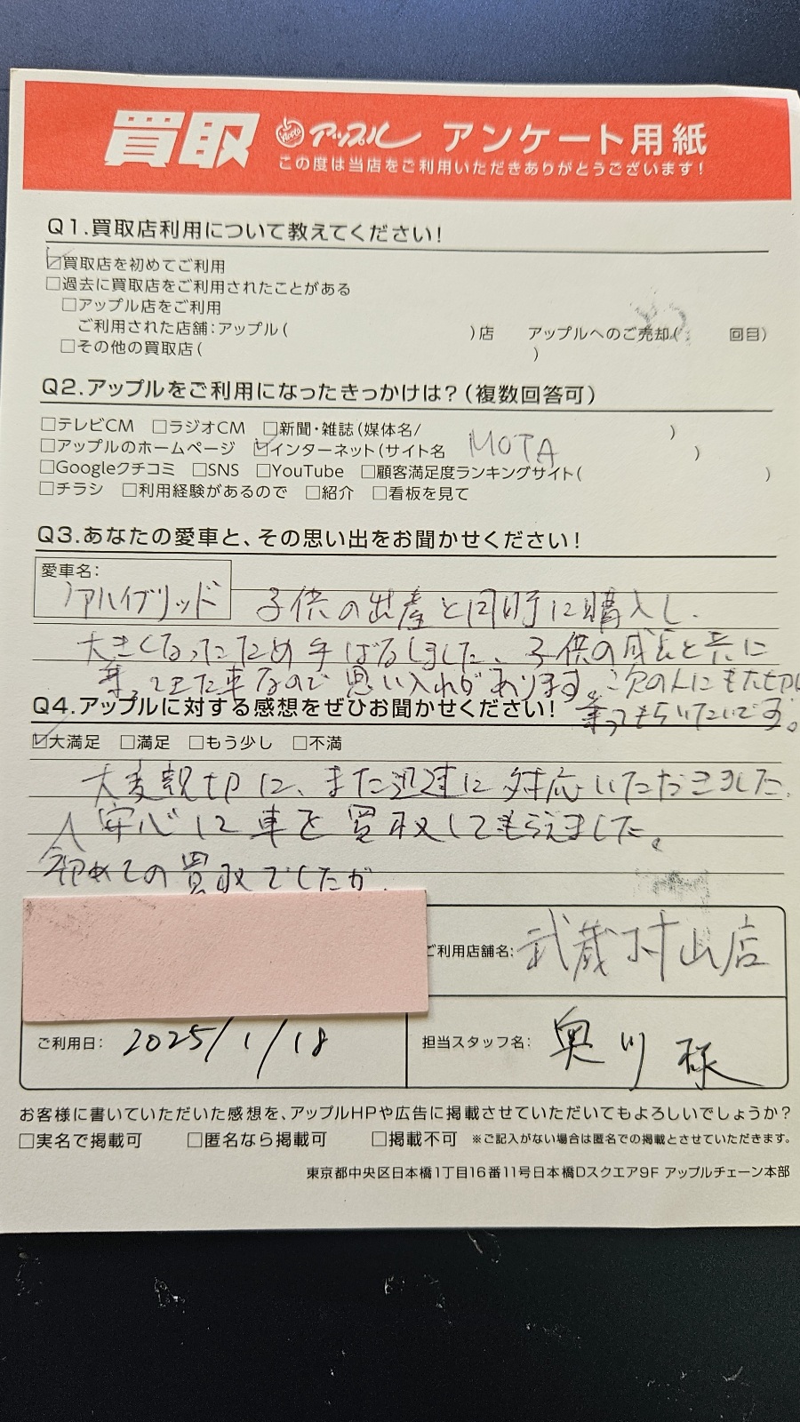 子供の成長と共に乗ってきた車なので思い入れがあります。