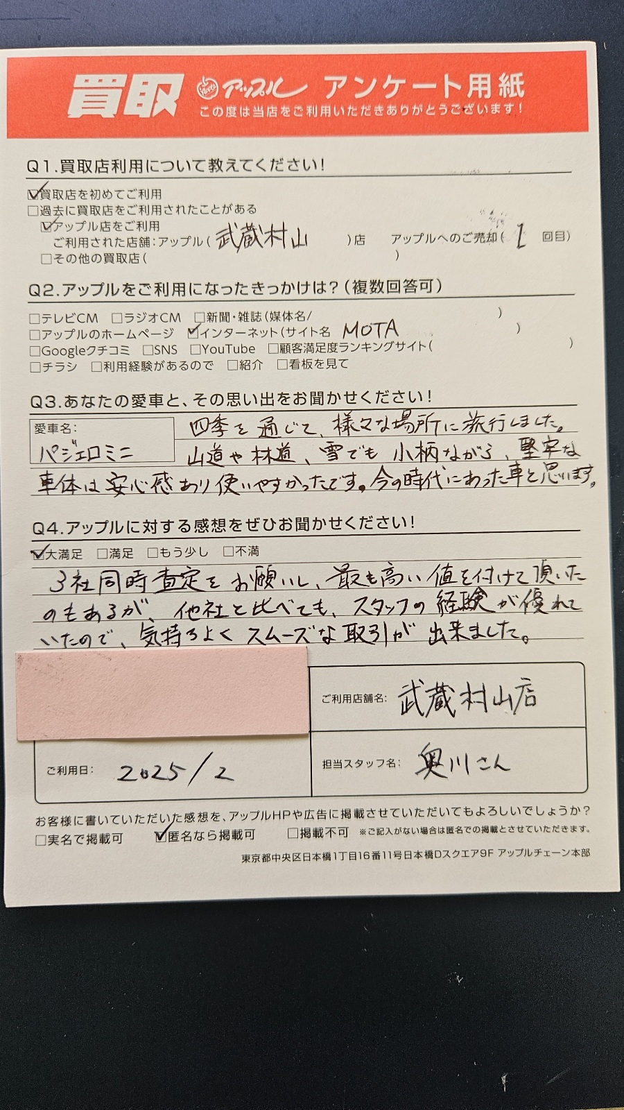 Y様 車名:三菱 パジェロミニ