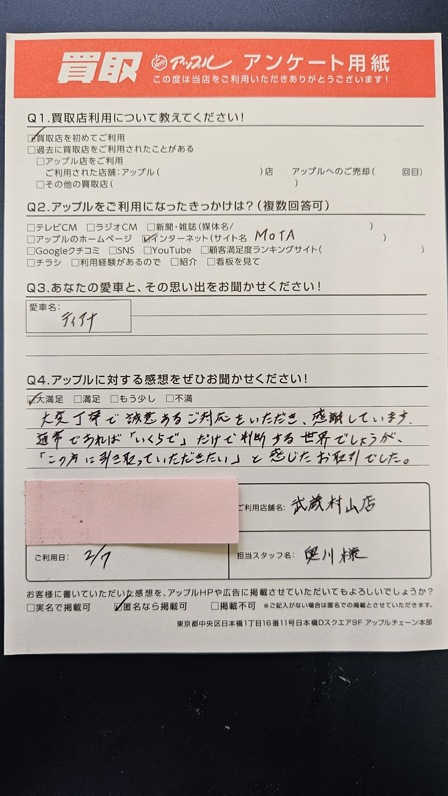 「この方に引き取っていただきたい」と感じたお取引でした。