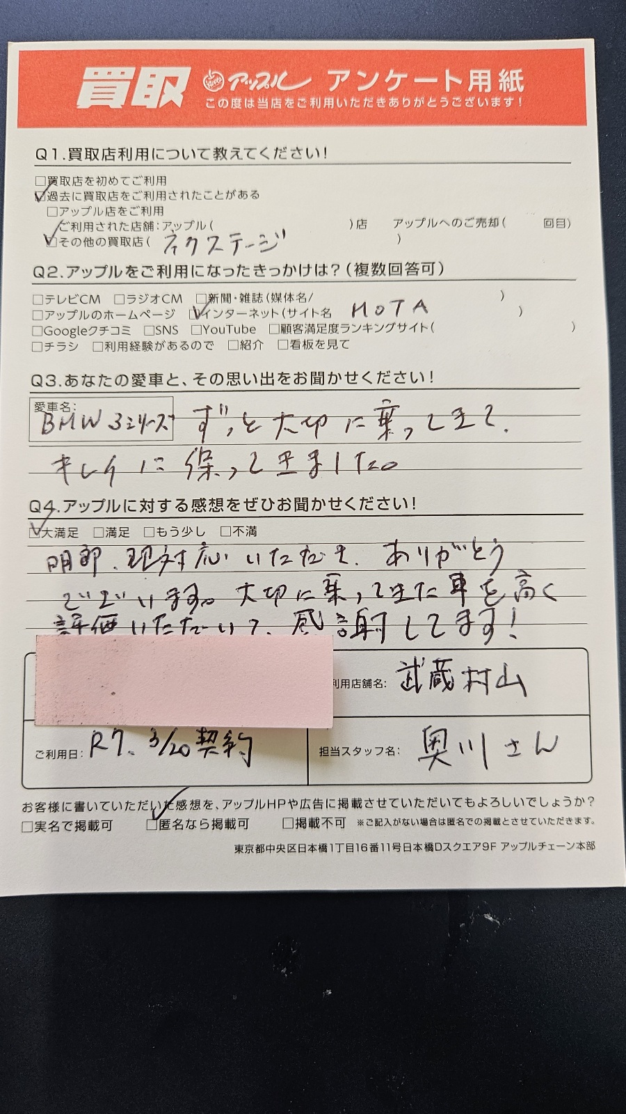 大切に乗ってきた車を高く評価いただいて感謝してます!
