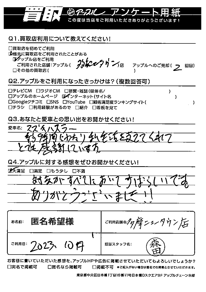 匿名希望 様 担当:森田