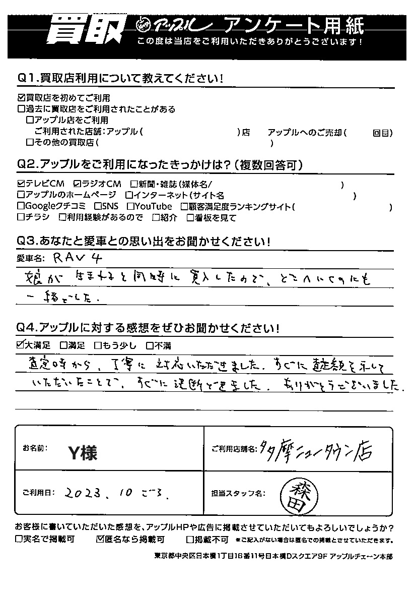 Y様 車名:トヨタ RAV4(R04年10月~RAV4 PHV含む)