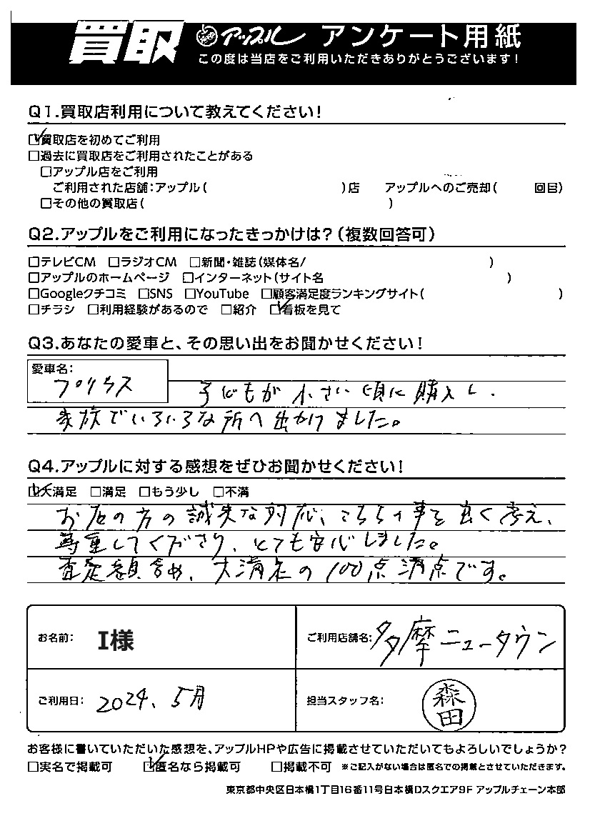 とても安心しました。査定額も含め、大満足の100点満点です。