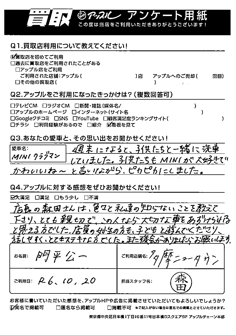 門平 公一様 車名:ミニ ミニクラブマン