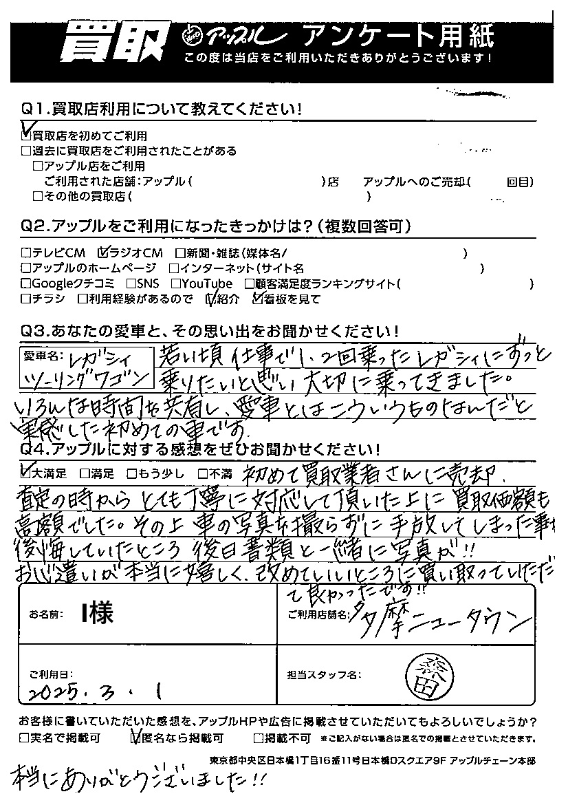 若い頃仕事で1、2回乗ったレガシィにずっと