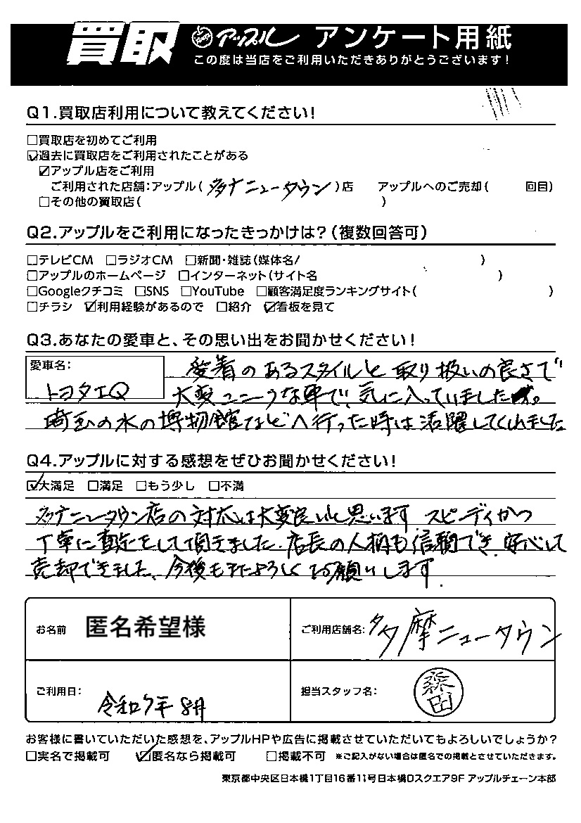 匿名希望様 担当:森田