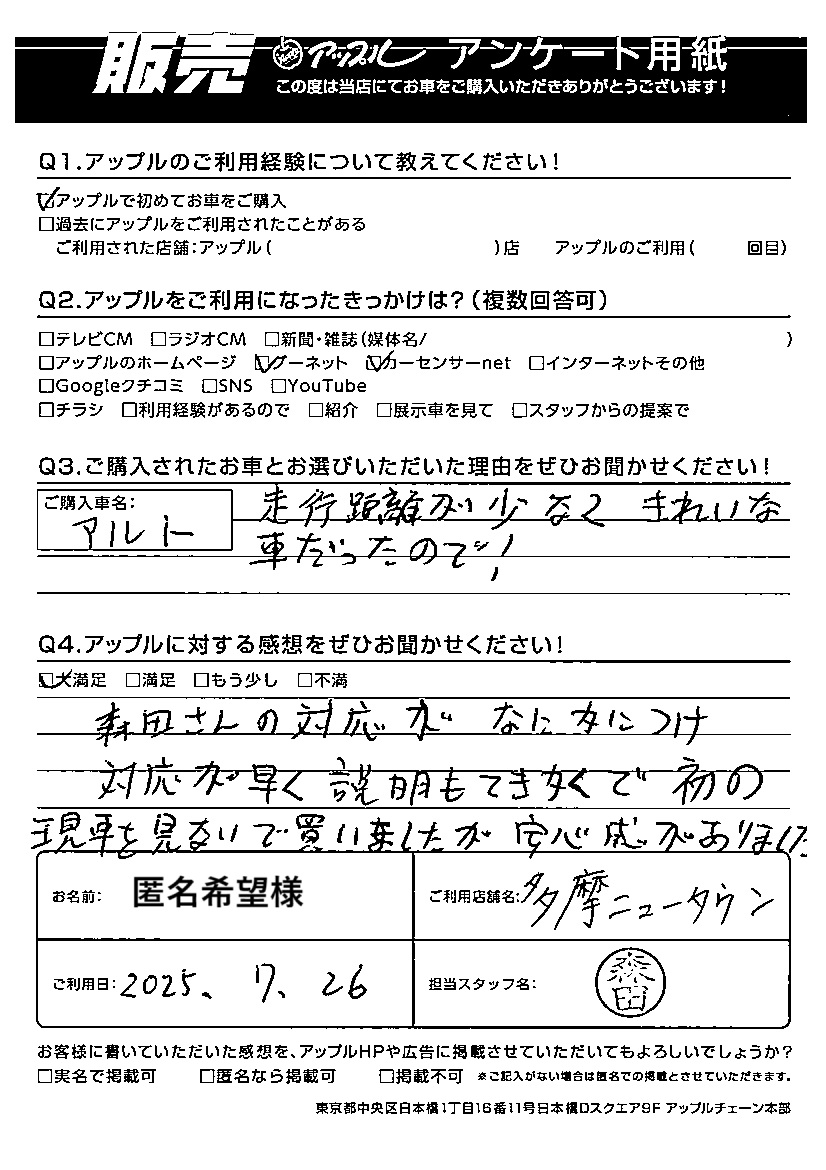 匿名希望様 担当:森田