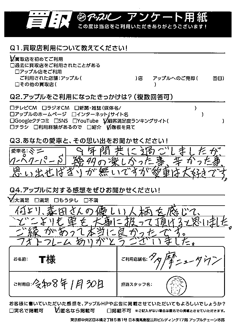 T様 車名:ミニ ミニクーペ