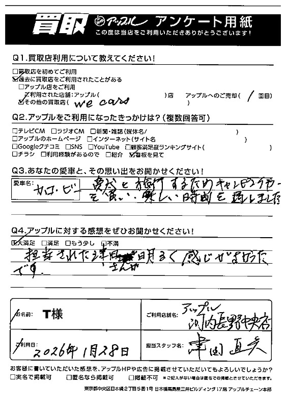 河内長野中央店をご利用されたお客様からいただいた