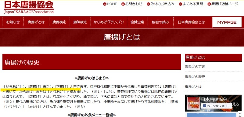 唐(中国)由来の揚げ料理ということで「唐揚げ」とする説もあります。
