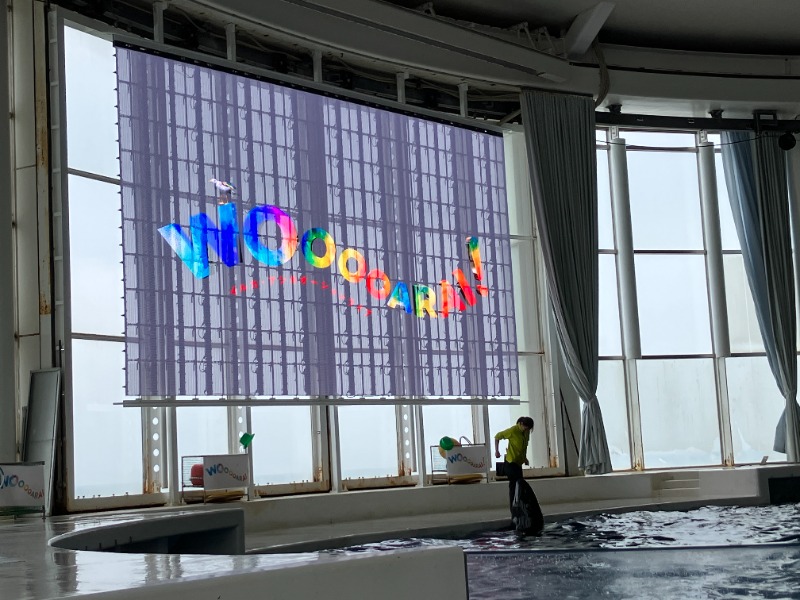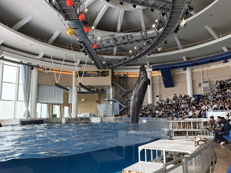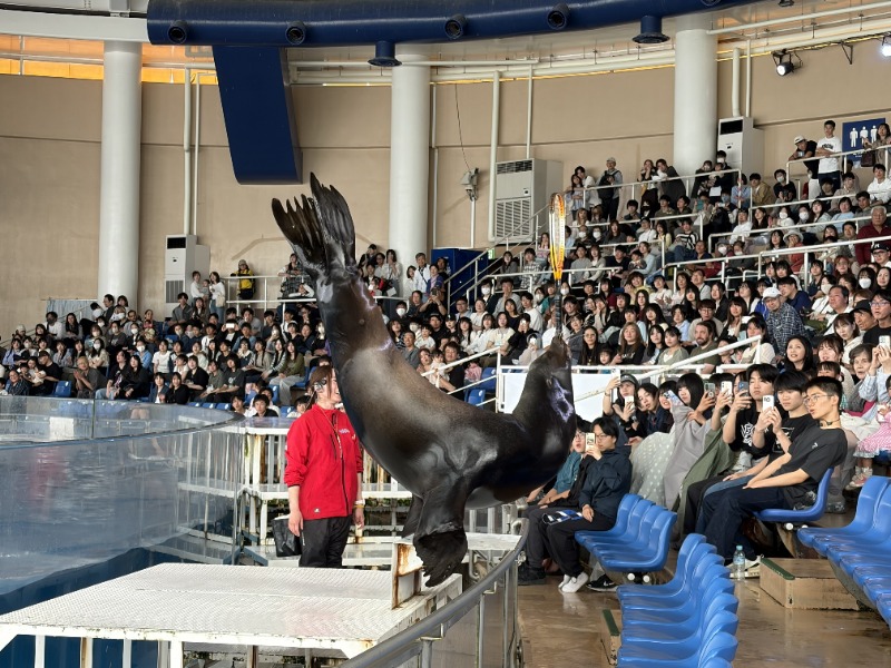 イルカ アシカのショーで前方に座っていれば水飛沫で濡れる的な