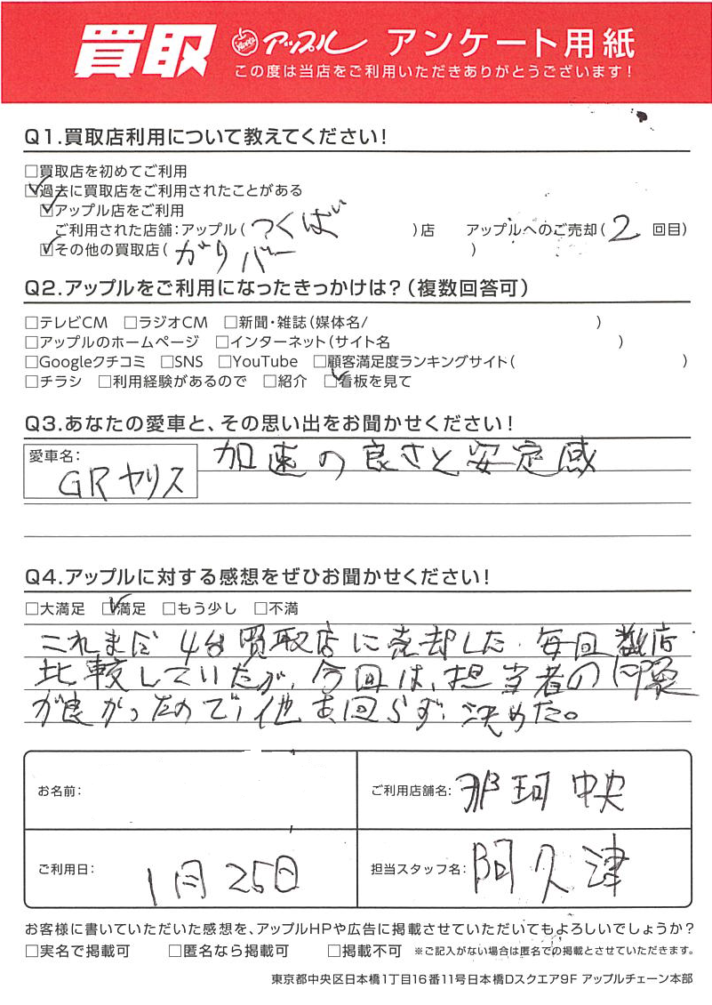 O様 車名:トヨタ GRヤリス