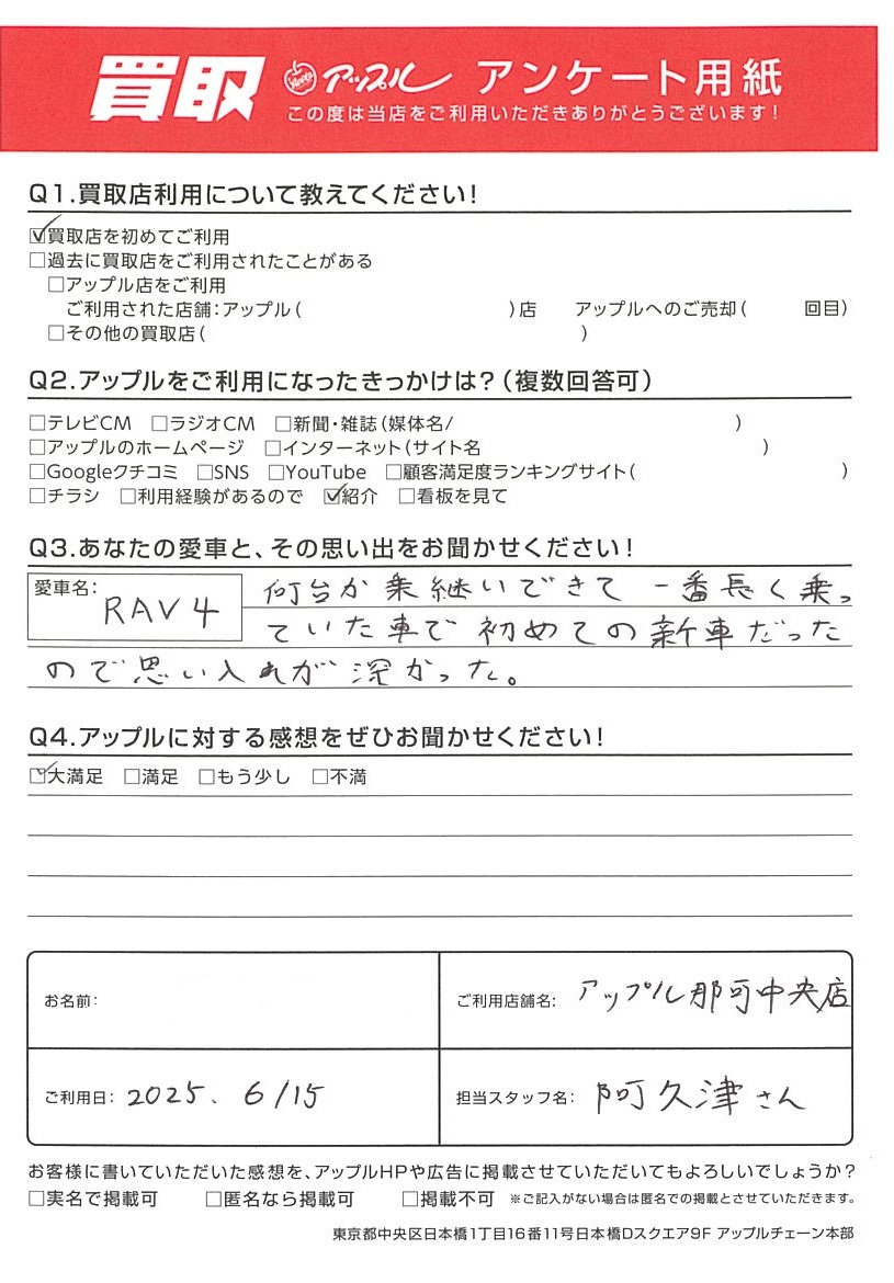 K様 車名:トヨタ RAV4(R04年10月~RAV4 PHV含む)