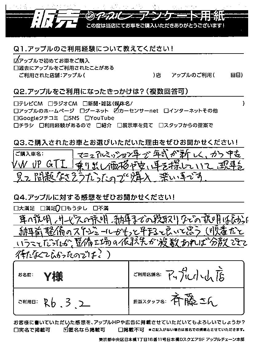 納車前整備のスケジュールがもっと早まると良いと思う。