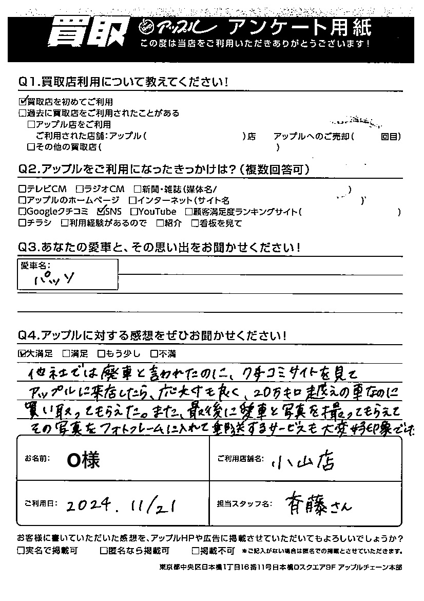 o様 車名:トヨタ パッソ
