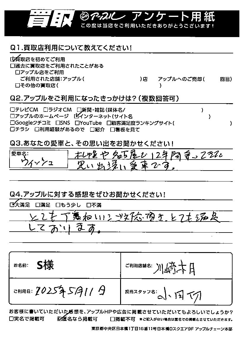 ご利用日:2025年5月11日 担当:小田切