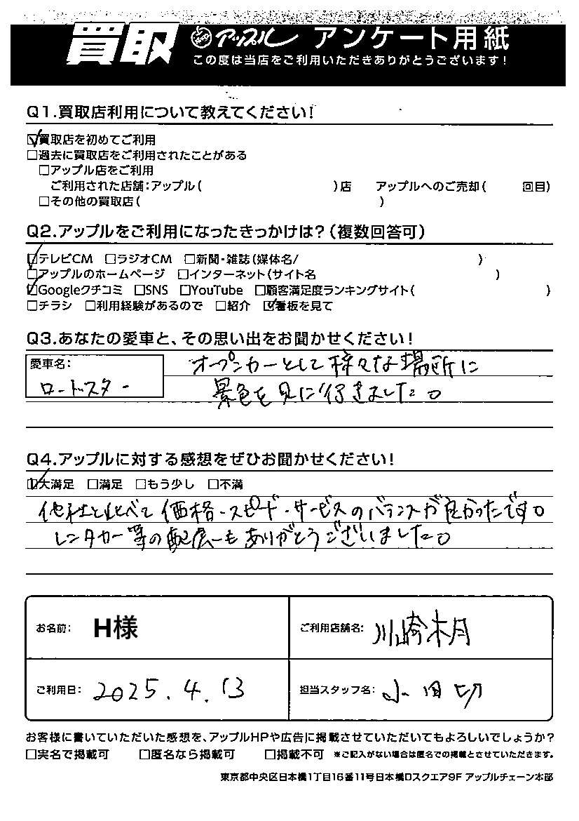 ご利用日:2025年4月13日 担当:小田切