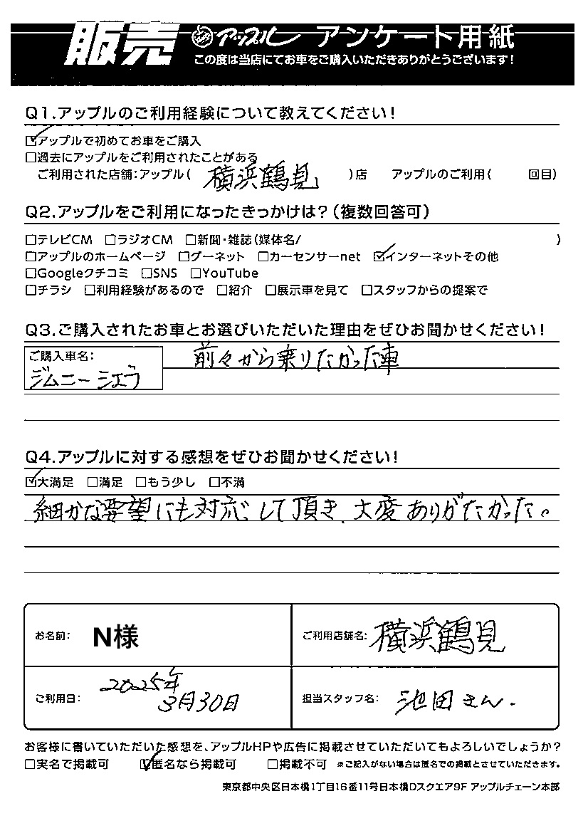 ご利用日:2025年3月30日 担当スタッフ:池田