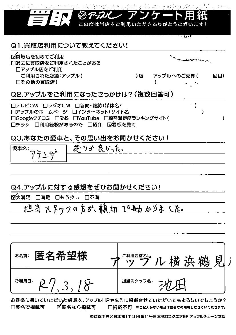 ご利用日:2025年3月18日 担当スタッフ:池田
