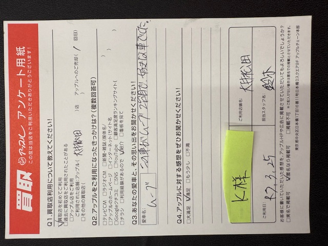 お車のご相談・ 査定だけでもOK! カンタン 入力 30秒 アップルがブランド買取始めました! お電話でも受付中! 受付時間10:00~18:00 0120-626-123 お車のご相談・ 査定だけでもOK! カンタン 入力 30秒 アップルがブランド買取始めました! お電話でも受付中! 受付時間10:00~18:00 0120-626-123 アップルがブランド買取始めました! お電話でも受付中! 受付時間10:00~18:00 0120-626-123 店舗情報 在庫車 スタッフ紹介 ブログ お客様の声 キャンペーン 無料査定 click お客様の声 ご記入日: 2025/03/25 K様 車名:ダイハツ ムーヴ Q3.あなたの愛車と、その思い出をお聞かせください!子の車がムーブ2台目で好きな車でした。 前へ 次へ お客様の声一覧を見る